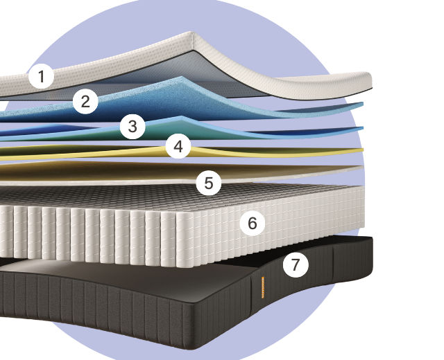 This ergonomically designed, open-pored foam layer adapts to your body and optimally distributes body pressure, regardless of your build and sleeping position. It also enhances airflow and absorbs moisture to keep your body cool and dry.